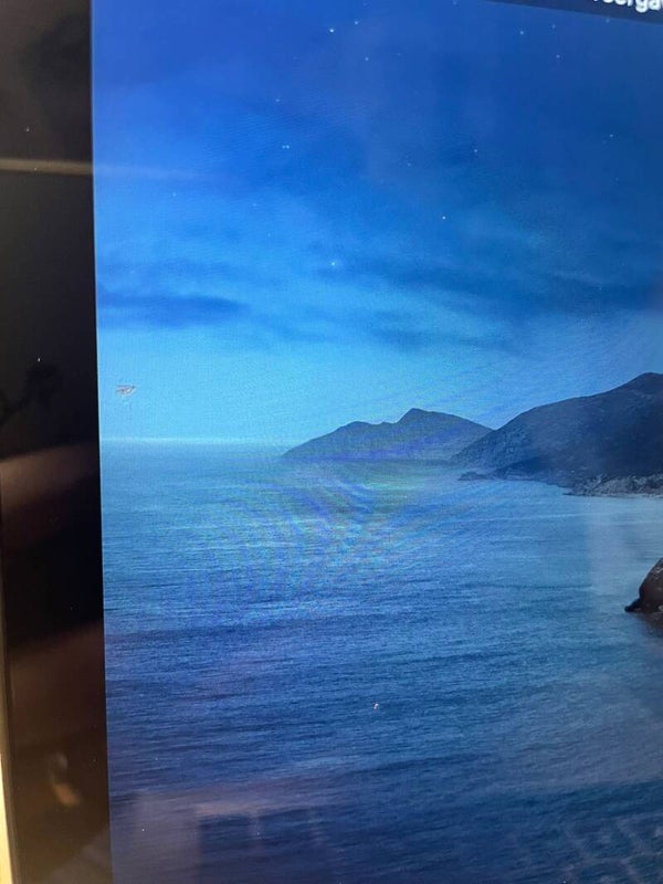 Plekje in scherm en rechts een beschadiging aan behuizing